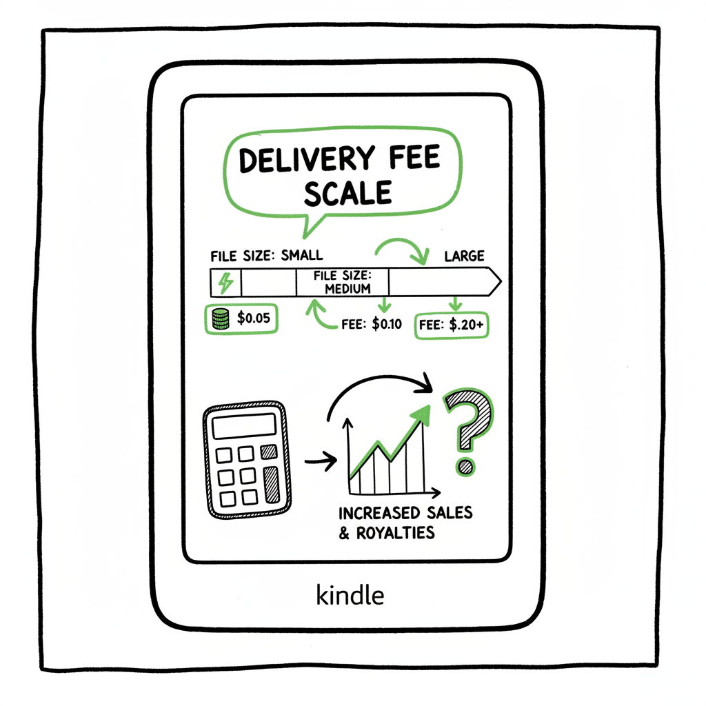 If you’re deciding how to price and distribute, keep two simple facts up front: delivery fees don’t apply to the 35% royalty option, and they’re calculated from Amazon’s compressed delivery file, not your original uploaded file. For a clear look at the royalty math and the official formula, see Amazon KDP Royalties Pricing Profit — it explains how delivery costs fit into the 70% royalty calculation and why monitoring file size matters.