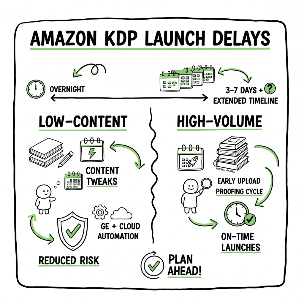 • Amazon KDP launch delays are real and affect low‑content and high‑volume publishers; timelines now often stretch beyond the old overnight expectation.