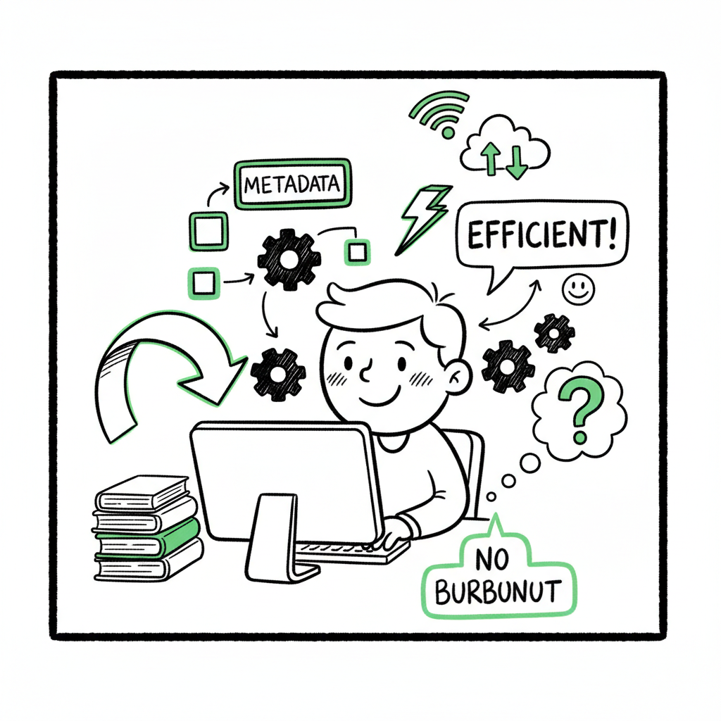 When metadata is templated, most entries are copy-and-paste or a CSV import. That reduces manual entry and speeds processing.