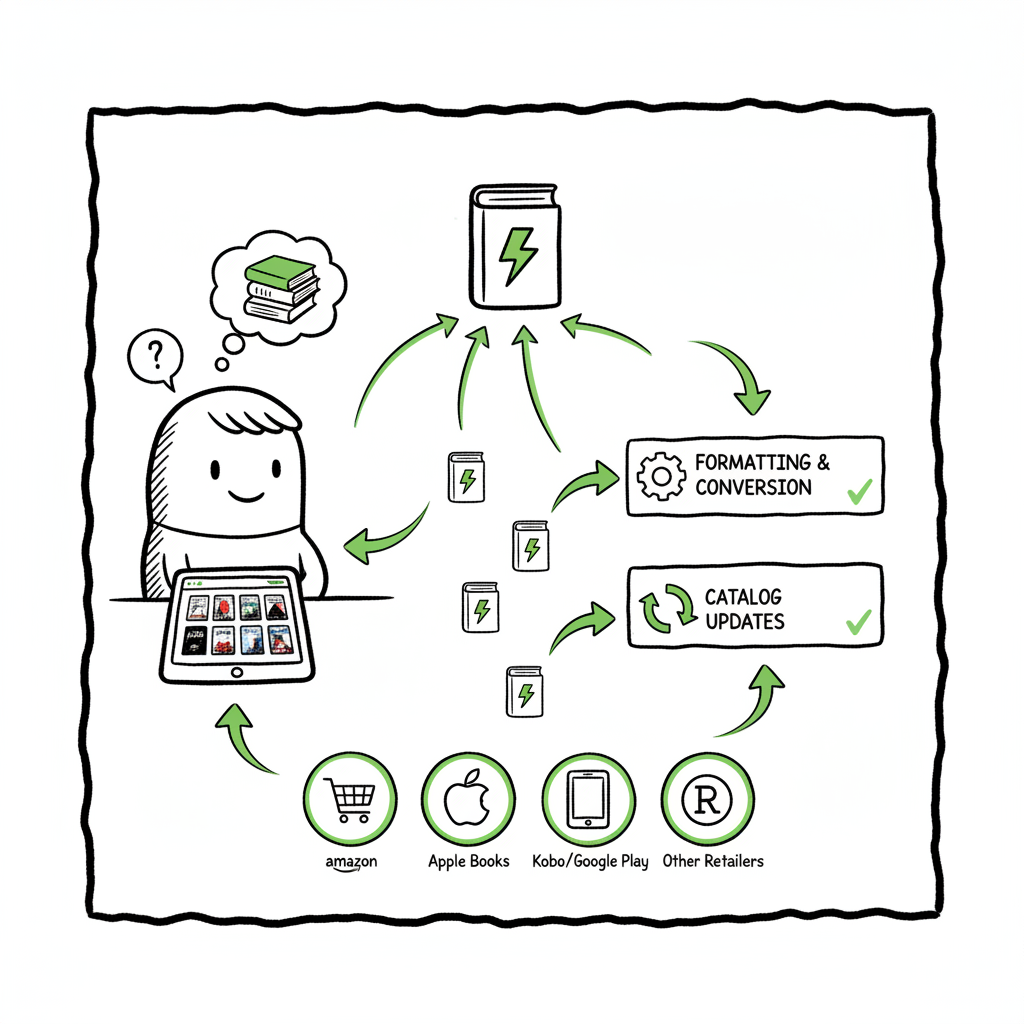 - Wide reach without complexity: Automating the upload makes wide distribution operationally feasible for authors who do more than a single title a year.