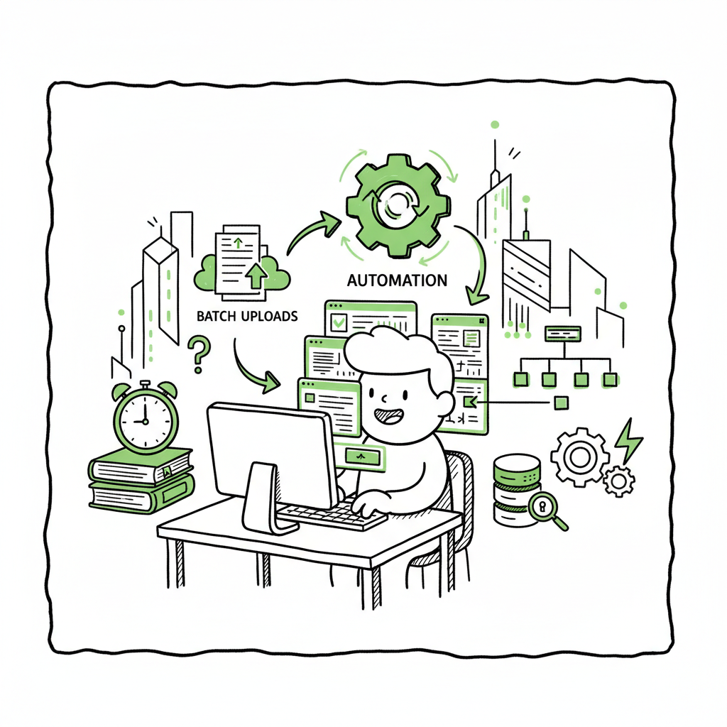 Batch uploading replaces typing the same fields repeatedly. You still approve the final retail pages, but most manual data entry disappears.