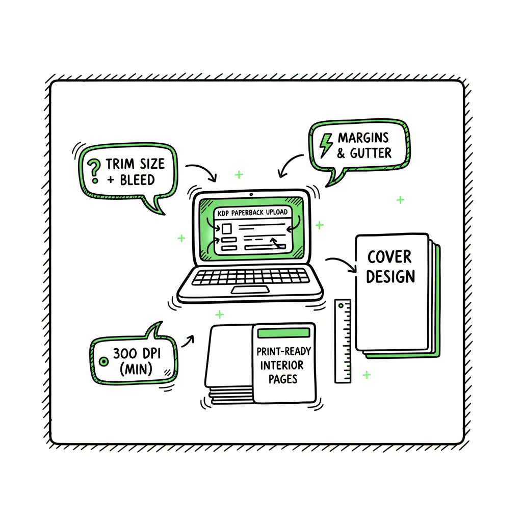 - The KDP paperback upload process centers on two files: a print-ready interior and a correctly sized cover. Prepare both to KDP specs to avoid preview errors.