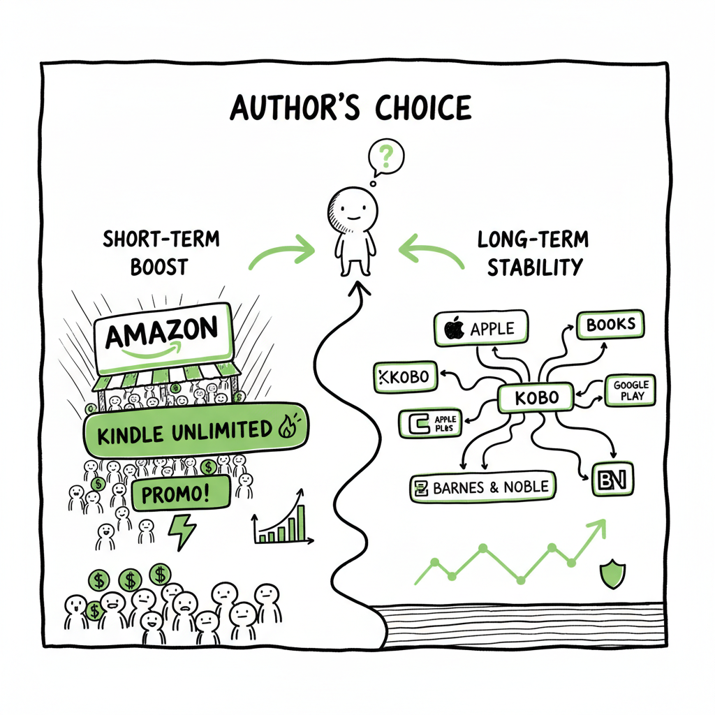 - Publishing wide distributes to Apple, Kobo, Google Play, Barnes & Noble, libraries, and more, reducing platform risk and improving long-term stability.