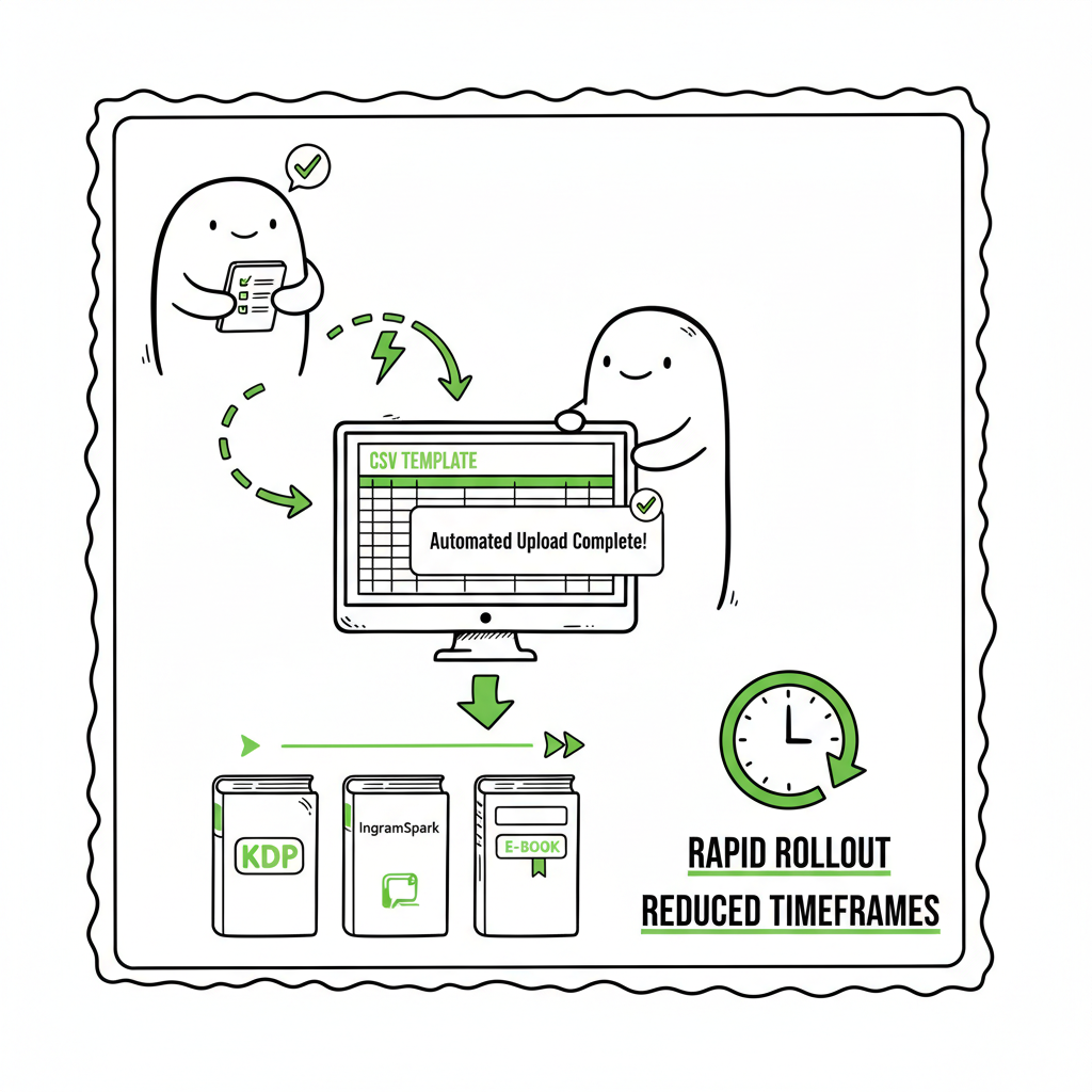- Batch uploads, CSV templates, and platform-aware checks reduce manual errors and let you publish multiple books in days rather than months.